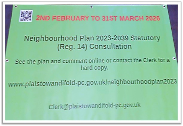 Comment via the comments form in the green button below. The form is to download. Email back to Clerk@plaistowandifold-pc.gov.uk by 10th December 2025.